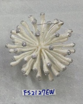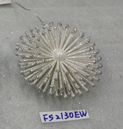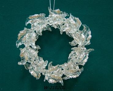 5"DIA. Plastic plated white w/silver glitter wreath ornament