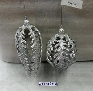 Plastic silver glitter hollow leaf ball ornament set/2 styles