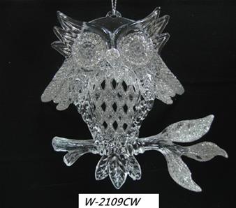 Acrylic clear in white glitter staying owl ornament.