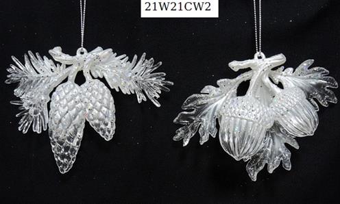 Acrylic frosted maple ornament set/2