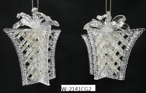 Acrylic clear with gold glitter gift box ornament set/2 styles