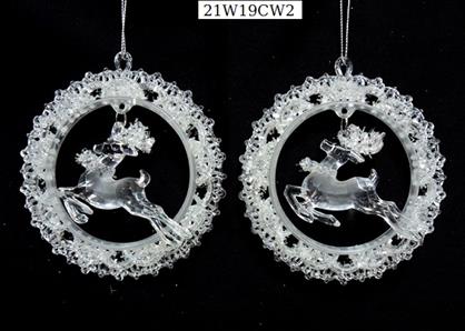 Acrylic frosted circle Deer ornament set/2