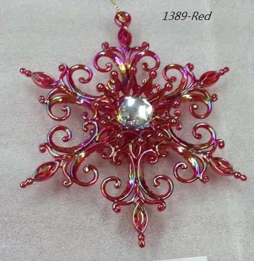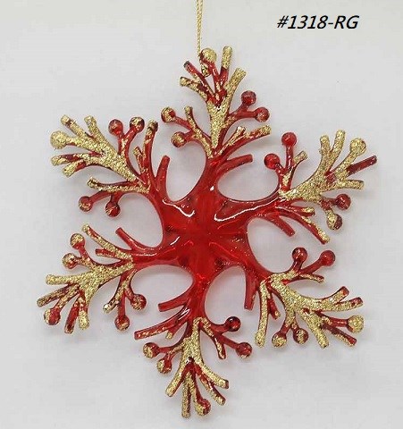5"H Acrylic red /green/gold snowflake ornament 2 colors