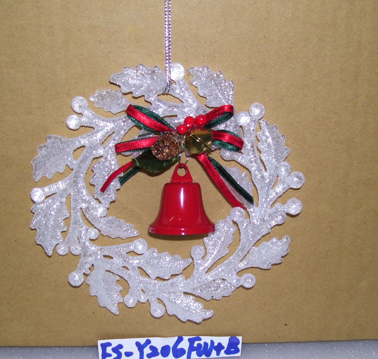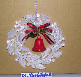 5"DIA. Plastic white glitter single wreath with bell ornament