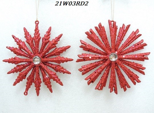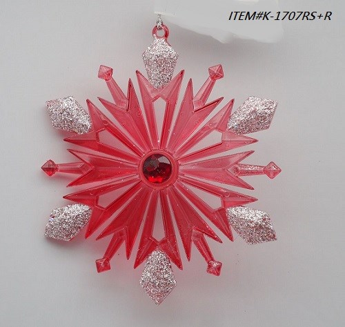 4"H Plastic bud snowflake ornament 2 color (red,blue)