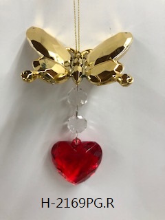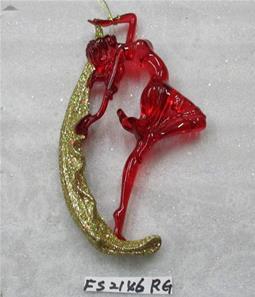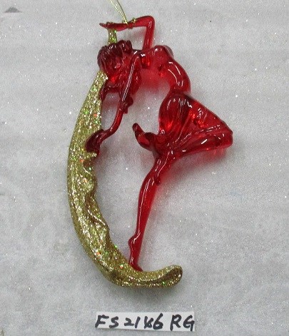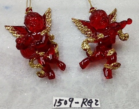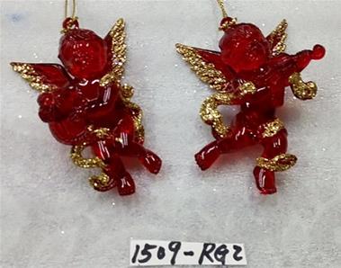 1.5"H Acrylic gold glitter cherub ornament in red color set/2