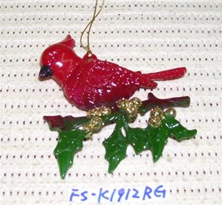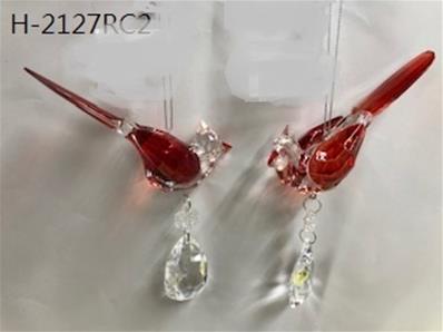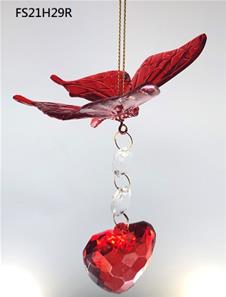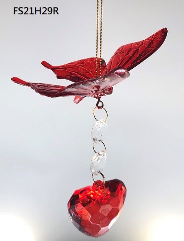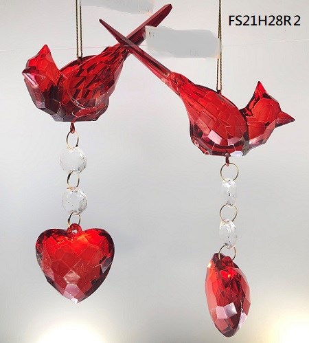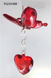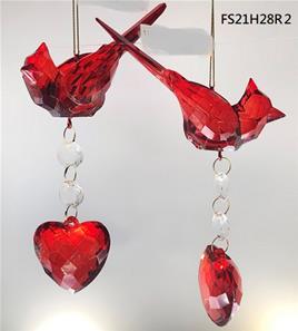 Acrylic ruby red robin bird with heart ornament 2 styles