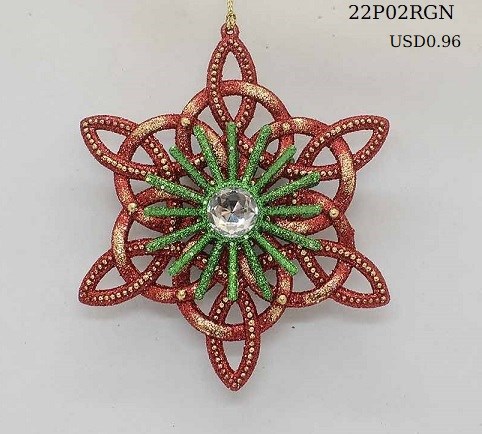 4"H Plastic snowflake ornament 2 colors (red, green)
