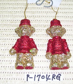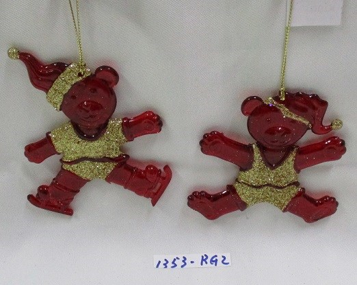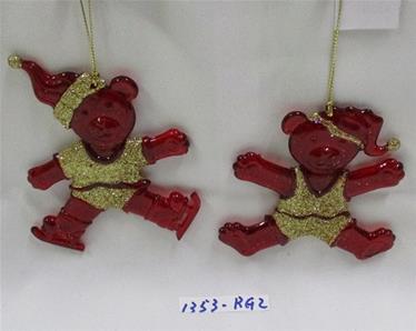 4"H Acrylic gold glitter bear ornament in red color set/2