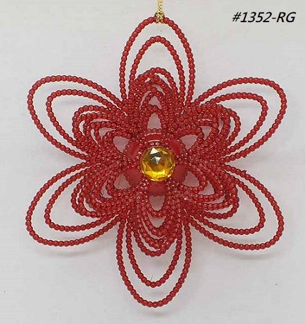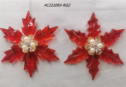 5"H Acrylic gold pearl bud snowflake ornament in red color