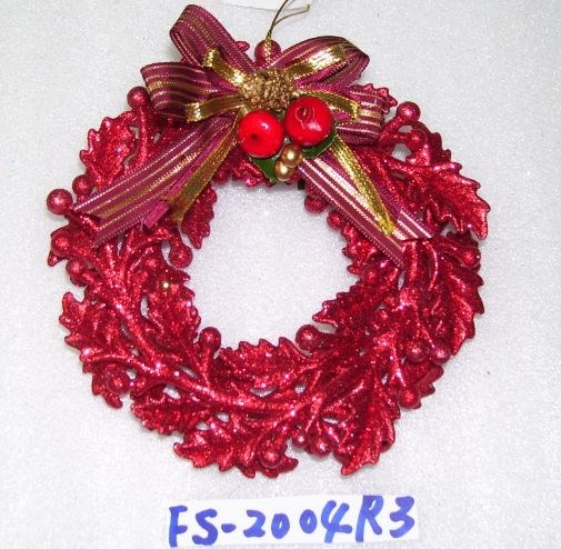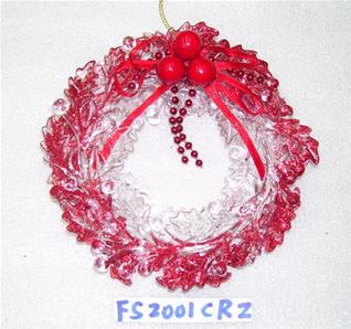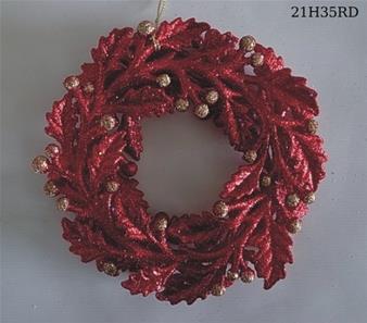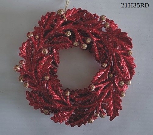 5"DIA. Plastic red wreath with berry ribbon ornament