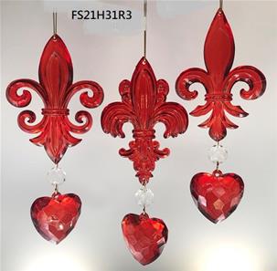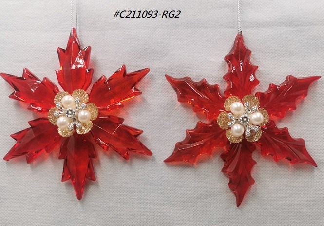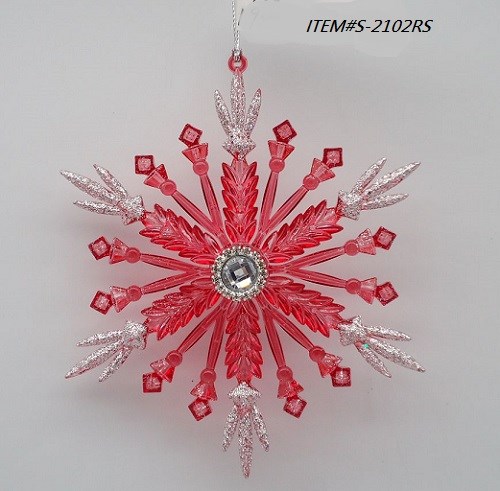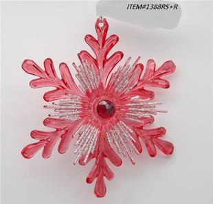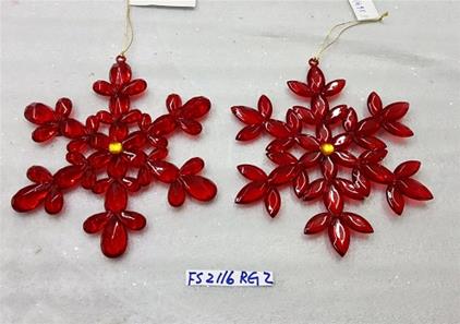 5"L Acrylic pearl snowflake ornaments in red color set/2
