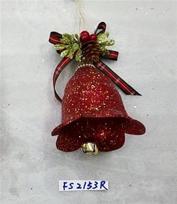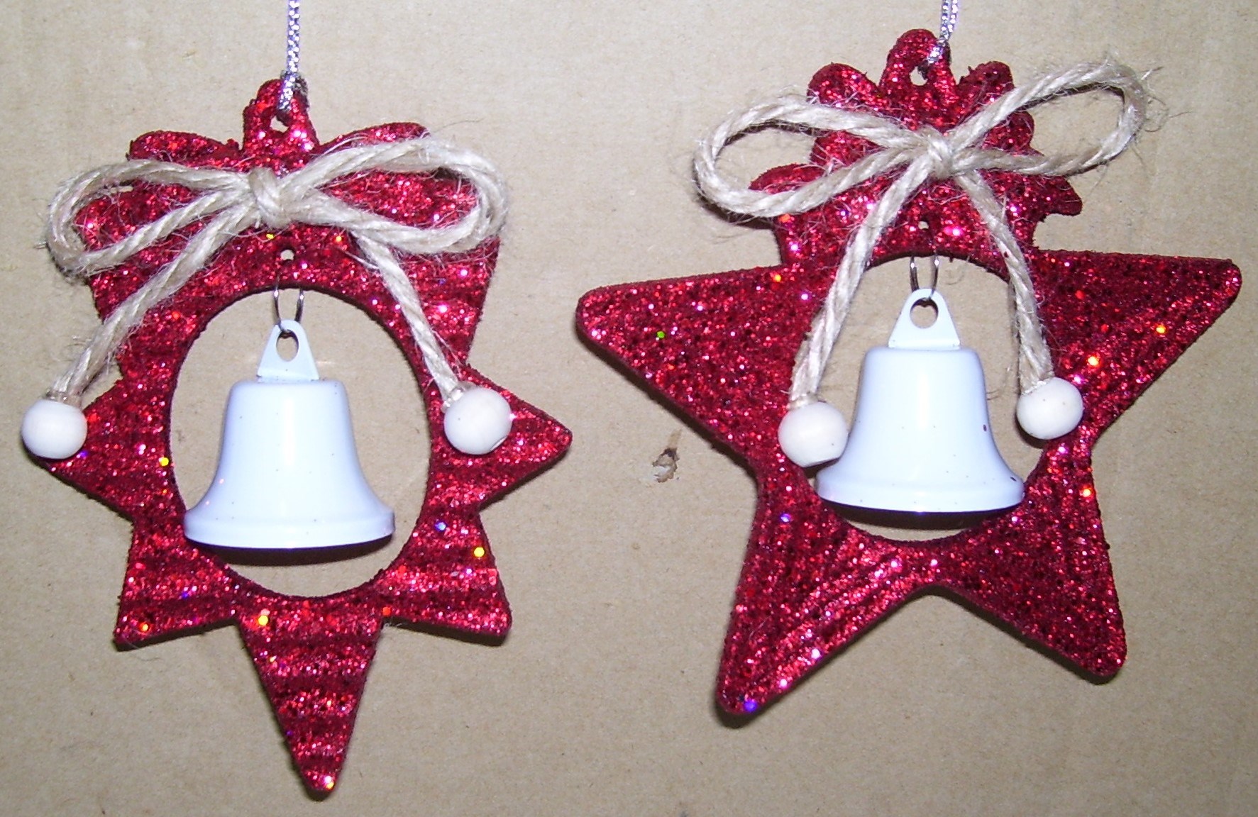4"/4.2"H Plastic red star+white bell ornament set/2 styles