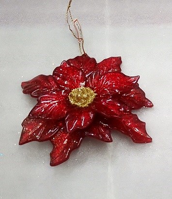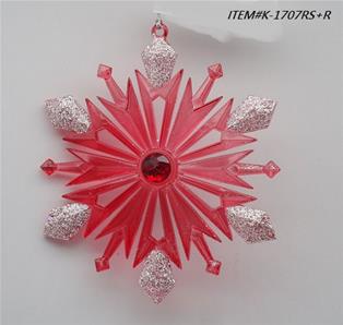 5"H Acrylic red pearl snowflake ornament in silver glitter