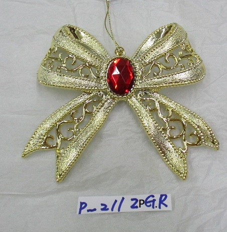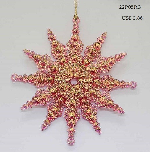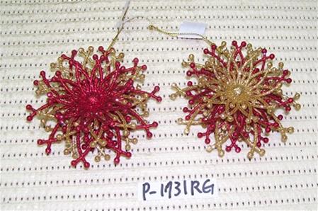 4"H Plastic bud red/gold snowflake ornament 2 color