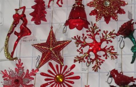 4"/4.2"H Plastic antique red star+red bell ornament set/2 styles