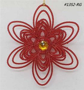4.5"H Acrylic gold pearl string snowflake ornament in red color