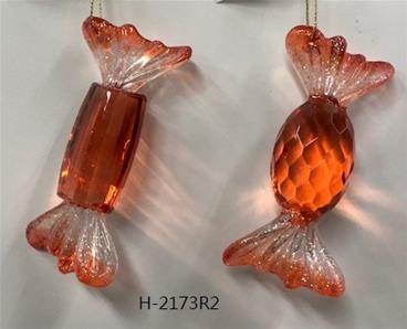 4"H Plastic frosted x'mas tree ornament 2 color (green, red)