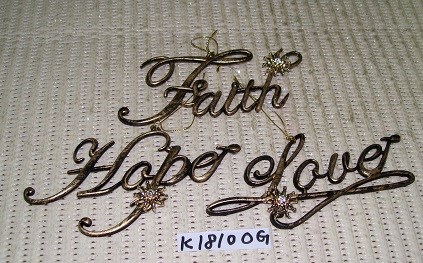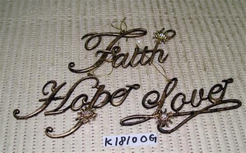 Plastic antique gold lettering ornaments set/3 (Faith,Hope,Love)