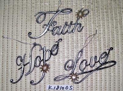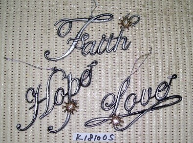 Plastic antique silver lettering ornaments set/3 (Faith,Hope,Love)