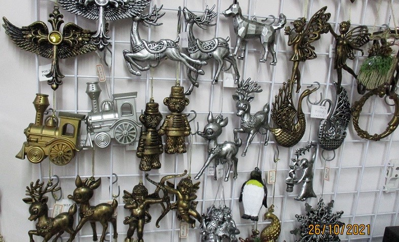 Plastic country x'mas tree ornaments 2 colors (white, gold)