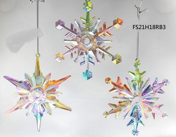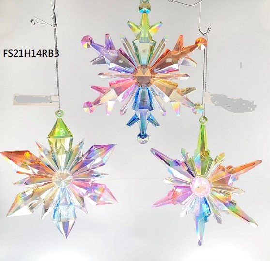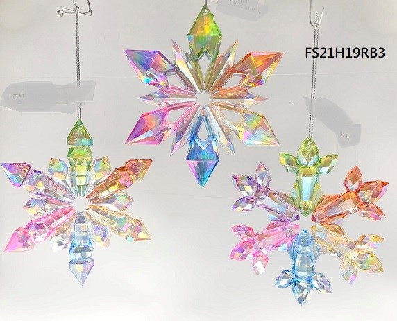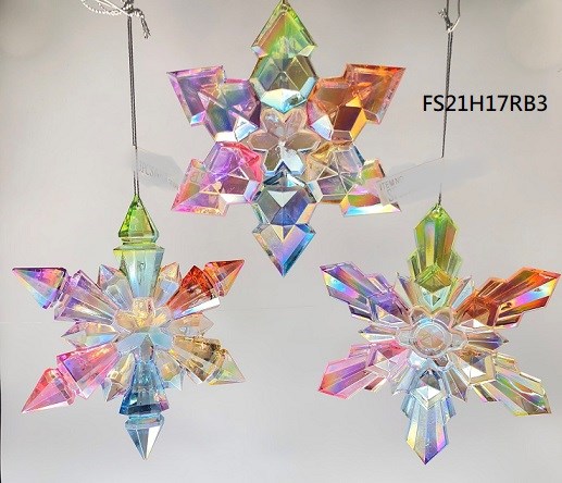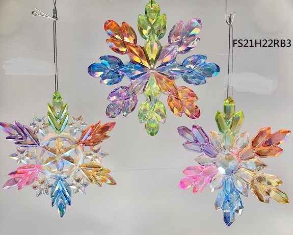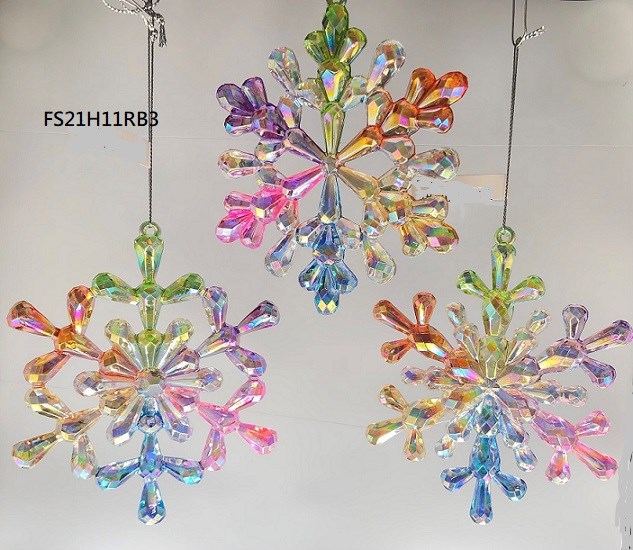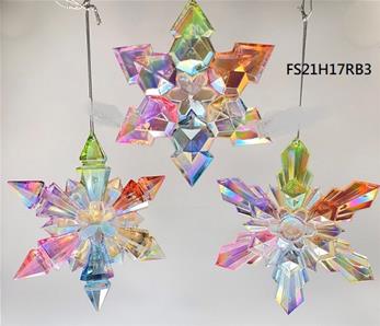 4.7"H Acrylic rainbow snowflake ornament 3 styles asst'd