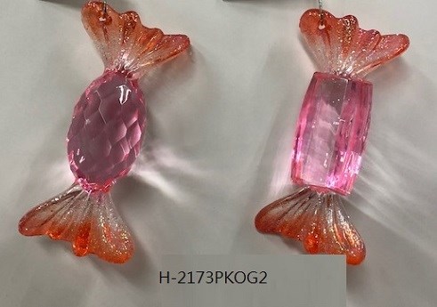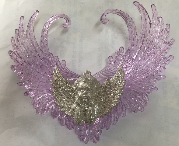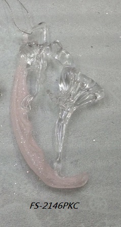 3.5"H Acrylic pink gold glitter cherub ornament 2 styles (less-1)