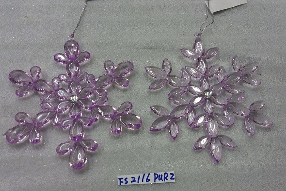 6"H Acrylic purple w/silver glitter snowflake ornament