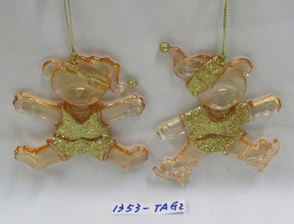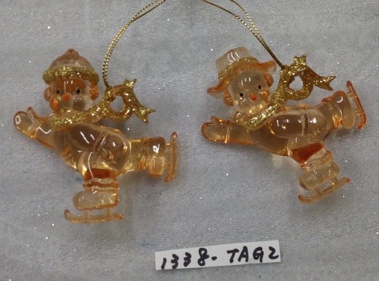 3.2"H Acrylic skiing snowman in gold glitter set/2
