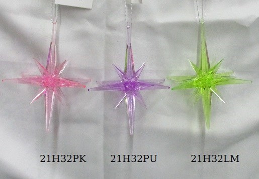 Acrylic iridescent dye multi points Star ornament 5 colors
