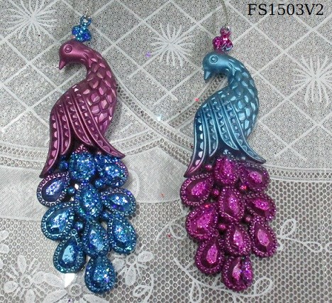 5.5"H Acrylic glitter peacock ornament 2 colors