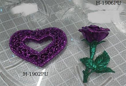 Acrylic purple glitter ornament 2 styles ( heart, rose)