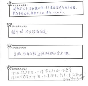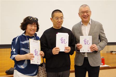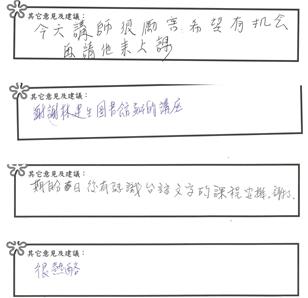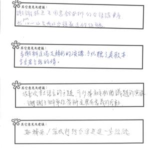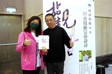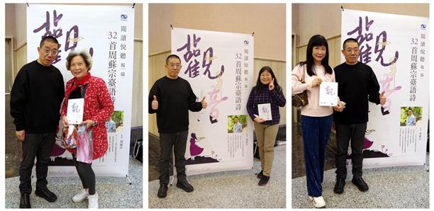 今天非常感謝周蘇宗老師帶全場二百多位聽眾從食、衣、住、行、育、樂各方面一起認識臺語在生活中的應用,此外,除了朗讀老師自己創作的多首臺語詩之外,也加入小王子、泰戈爾等英文詩句的朗讀,比較其音韻之美。今日也特別感謝本會林鴻熙董事贊助贈送與會聽眾每人一本《觀音》臺語詩集。