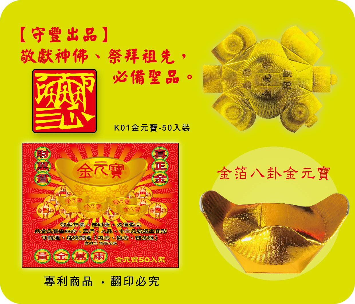 【守豐出品】環保紙業/Q系列 招財中元寶