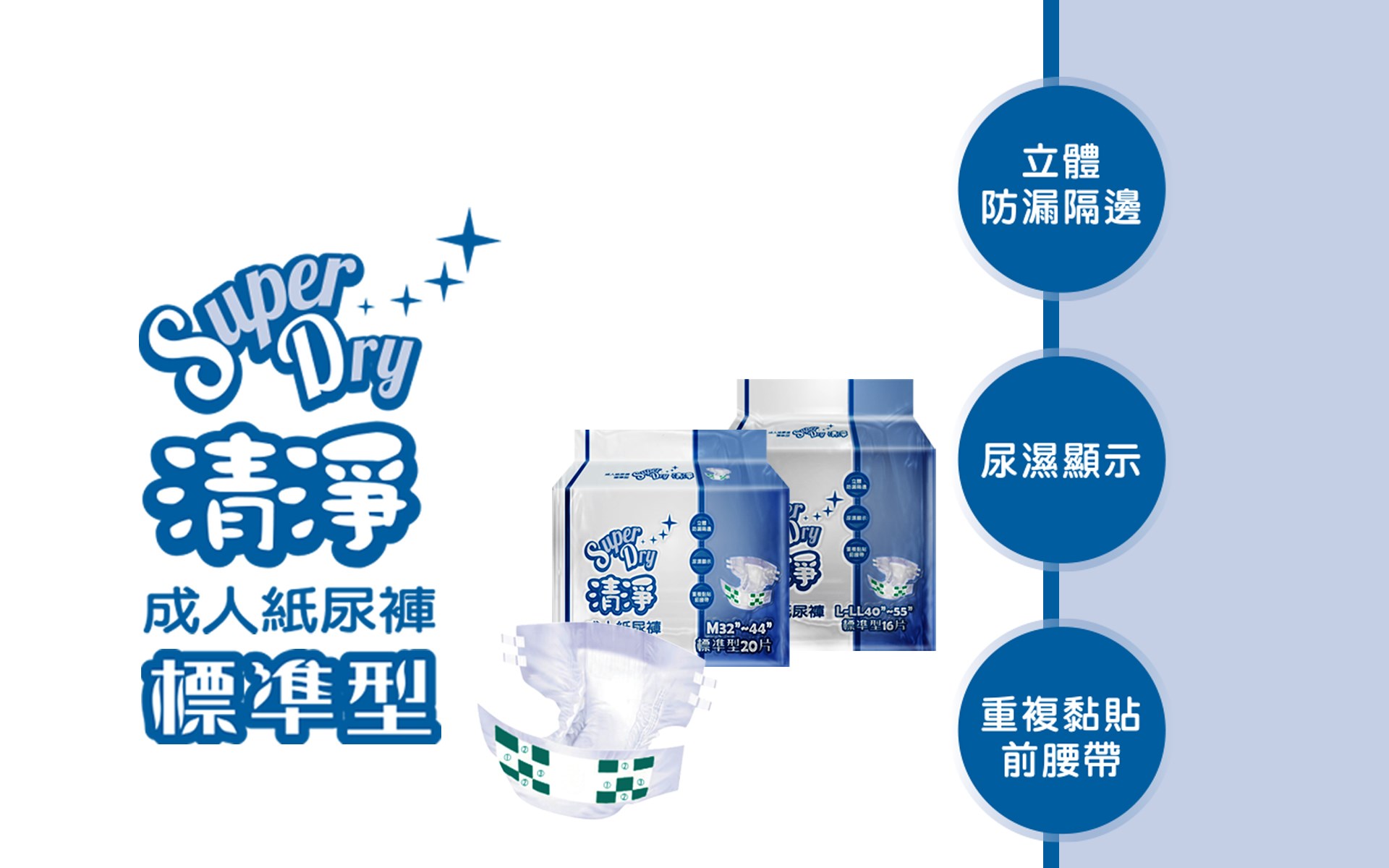清淨 SuperDry 成人紙尿褲 M號 (32"~44") /黏貼型 (20片x6包) $1,180 $1,030