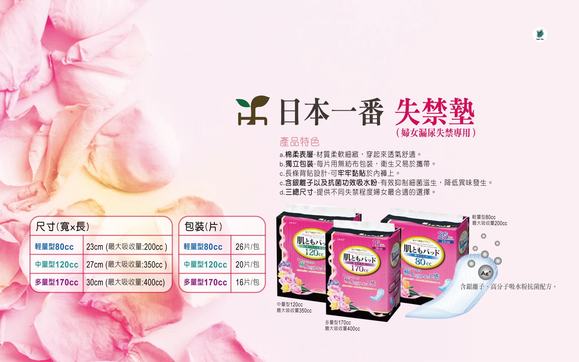 日本一番-失禁衛生棉墊 170cc 多量型 (婦女漏尿專用) $1,305 $1,260