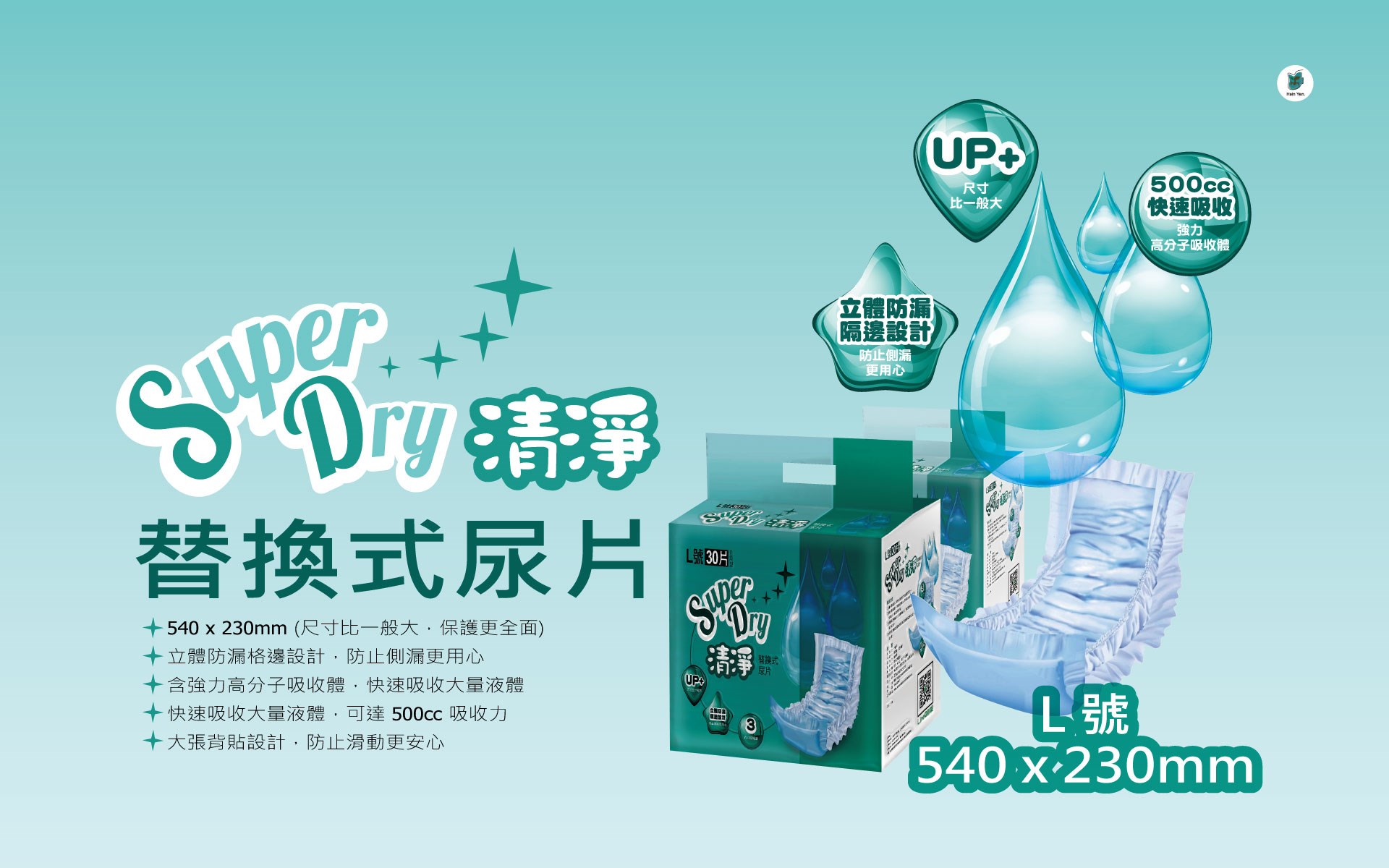 清淨 SuperDry 成人紙尿褲 L號 (40"~55") /黏貼型 (16片x6包) $1,180 $1,030