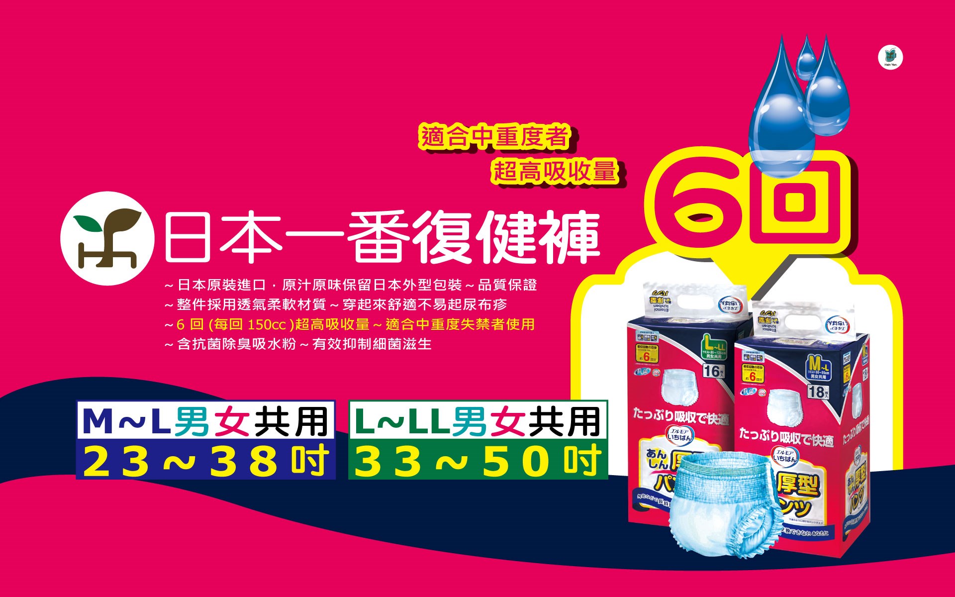 日本一番-復健褲 ML 號 (23"~37") (18片x4包) $1,520 $1,440