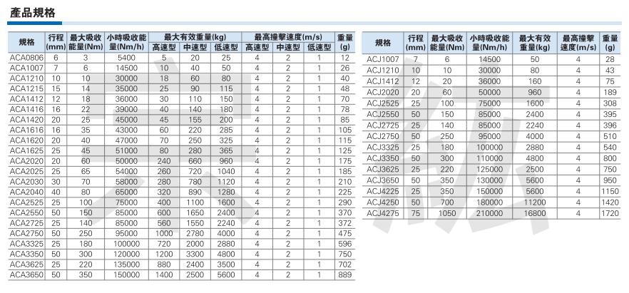 ACA、ACJ系列油壓緩衝器