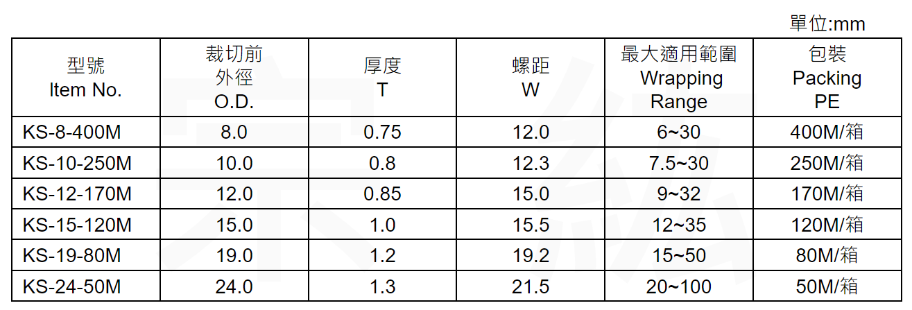 6.另備有KSP系列捲軸包裝每捲100FT(30.5M)