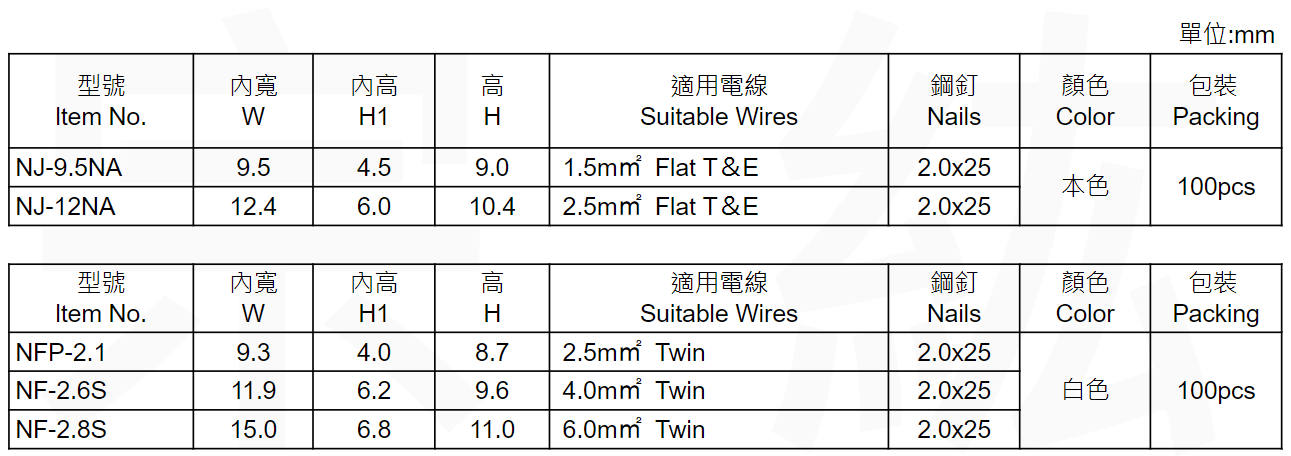 1011 KSS NJ/NFP/NF 扁線固定夾