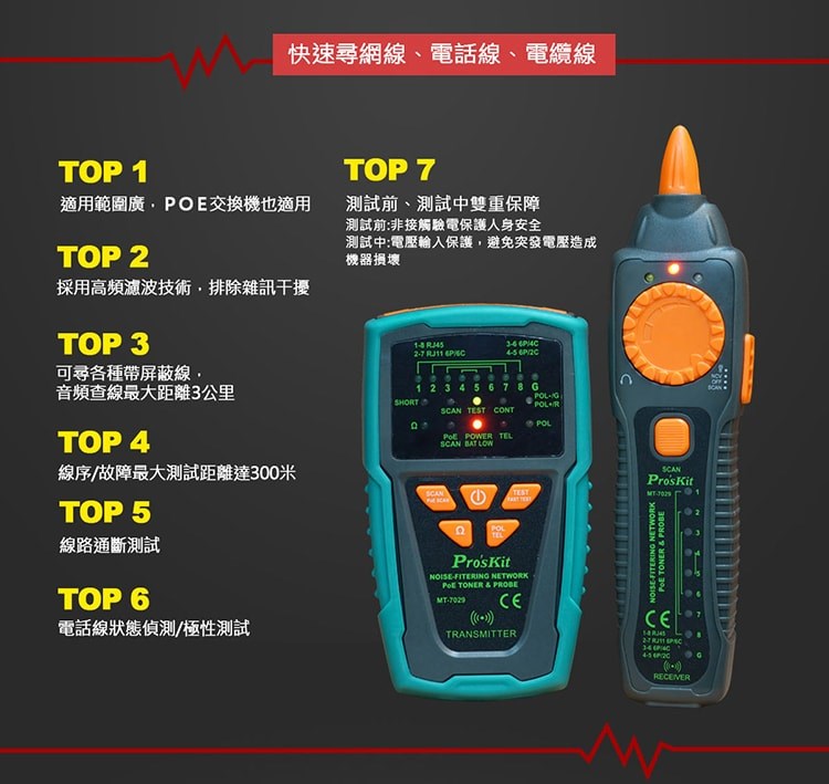 寶工MT-7029抗干擾型音頻網路PoE查線器採用高頻濾波技術